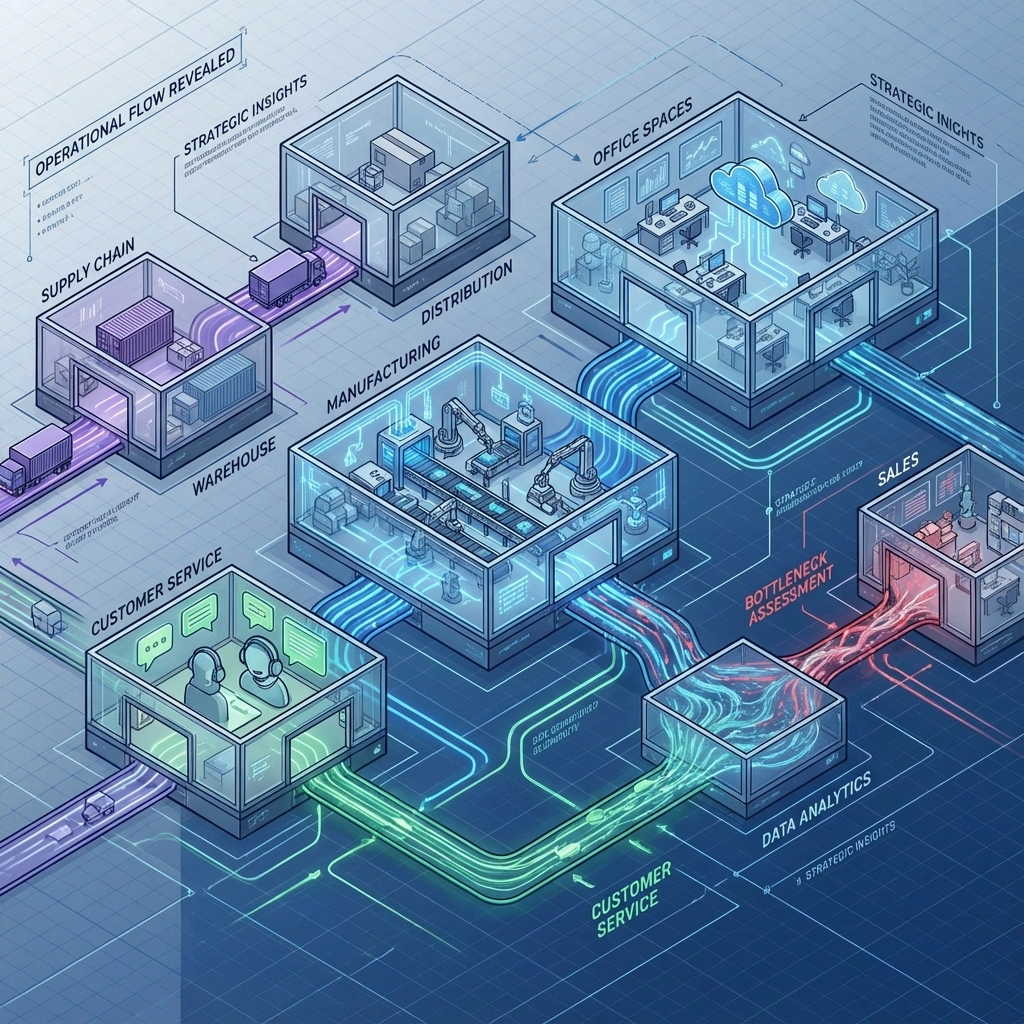 Every engagement begins with listening. What are your current pain points? Where are the bottlenecks killing your efficiency? What regulatory requirements must you meet? How do you actually make money, and what's getting in the way?