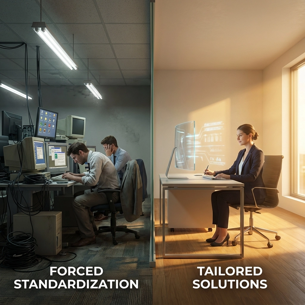 Your competitive advantage depends on doing things differently. If your unique processes are what make you profitable, standardizing them away would be strategic suicide. We build systems that preserve and enhance your competitive edge.
